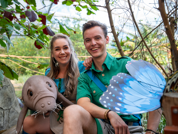 Zoë & Silos - De Desert MusicalHet verhaal gaat verder! Na het grote succes van ‘Zoë & Silos - De Desert Musical’ stond in de zomer van 2019 het leven in het tropisch regenwoud centraal in De Bush Musical! Hier maakte we kennis met onder andere de victoria kroonduif, die tijdens het uitbroeden van haar ei een brommend geluid hoort waarna plotseling de hele boom omviel! Lukt het Zoë & Silos met behulp van het aardvarken, de kleinklauwotter en de kaaiman om het ei van de kroonduif terug te vinden?