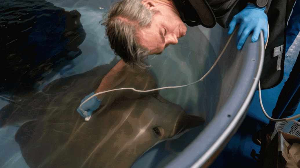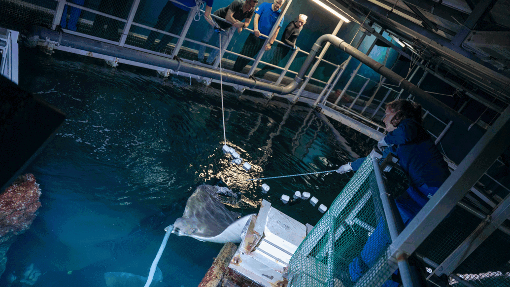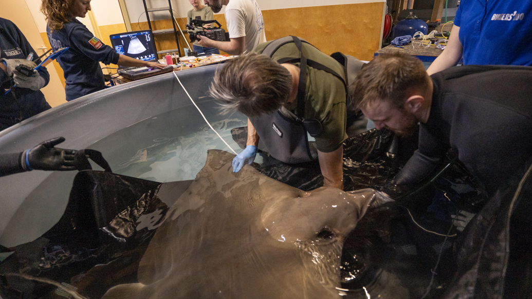 Vanwege het enorme formaat van het volwassen vrouwtje – haar spanwijdte is naar schatting 1,70 meter en ze weegt tientallen kilo’s – is het een complexe operatie om het dier uit het bassin van 1,6 miljoen liter water te takelen. De rog is na de vangst gewogen en in een kleinere bak onder narcose gebracht. Eenmaal in slaap heeft de dierenarts bloed afgenomen en de afmetingen van de rog genoteerd. Vervolgens heeft hij de anticonceptie toegediend en een echo gemaakt. Het dier beschikt over gifstekels aan de staartbasis, die tijdens alle handelingen door een speciaal daarvoor aangewezen dierverzorger goed in de gaten gehouden worden.