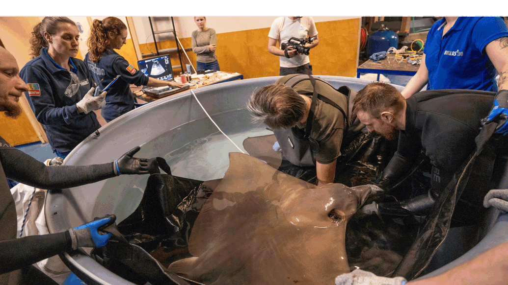 Het team van Burgers’ Ocean heeft woensdag 28 januari 2026 een volwassen adelaarsrog met een spanwijdte van circa 1,70 meter uit het tunnelbassin gevangen. Het dier is momenteel drachtig en heeft in Arnhem al aardig wat jongen gekregen, die verspreid zijn over heel Europa. De rog kreeg woensdag een anticonceptiemiddel en er is een echo gemaakt. Het vrouwtje is in 2014 zelf in Arnhem geboren en haar DNA is inmiddels goed vertegenwoordigd in de populatie. Burgers' Zoo is namelijk de grootste kweker ter wereld van gevlekte adelaarsroggen: maar liefst 78 jongen in totaal zijn er tot op heden in Arnhem geboren.