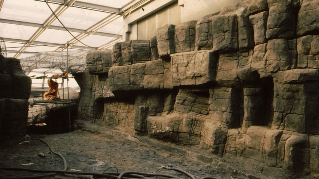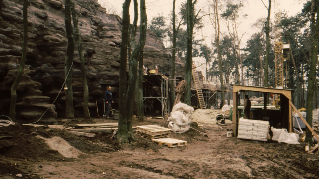 Met rotsbouw waren al de nodige ervaringen opgedaan elders in het park. Een team van met name Amerikaanse specialisten kwamen de rotsen hun kenmerkende vorm en uiterlijk geven, door spuitbeton zorgvuldig te bewerken, te ‘boetseren’ en in de juiste kleuren te schilderen. Maandenlang, tijdrovend werk: maar het resultaat mag er zijn! Het woestijnlandschap in Arnhem kenmerkt zich door droge rivierbeddingen (arroyo’s), puinhellingen, canyons en de typerende rotsformaties die typisch en beeldbepalend zijn voor dit gebied. Op het moment van schrijven worden de rotsen rond het reptielenverblijf volgens deze beproefde techniek vormgegeven. Deze rotsen vormen straks een natuurlijke afscheiding tussen de bezoekers en de dieren, zodat het lijkt alsof de dieren zich vrij in het hele woestijnlandschap kunnen bewegen, op voor Burgers’ Zoo kenmerkende wijze.